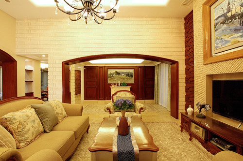 客厅整体的装饰以仿古艺术品为主,红褐色的艺术品和红木框架相得益彰,更加凸显了整个房子的历史气息。
