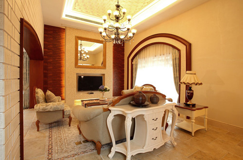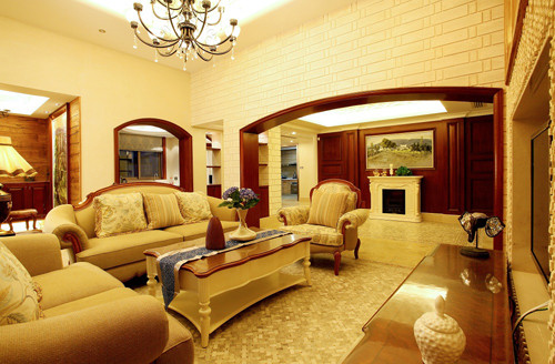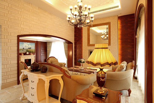 客厅整体的装饰以仿古艺术品为主,红褐色的艺术品和红木框架相得益彰,更加凸显了整个房子的历史气息。